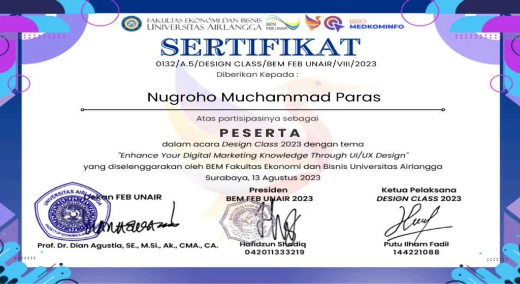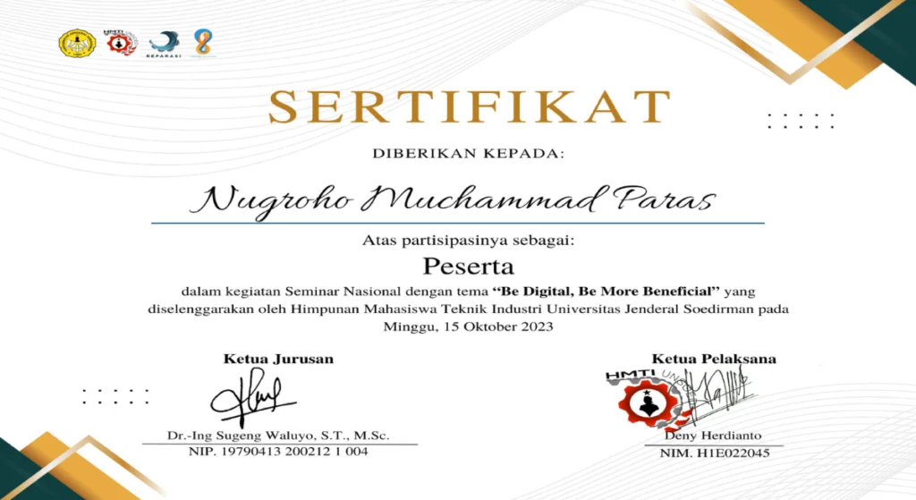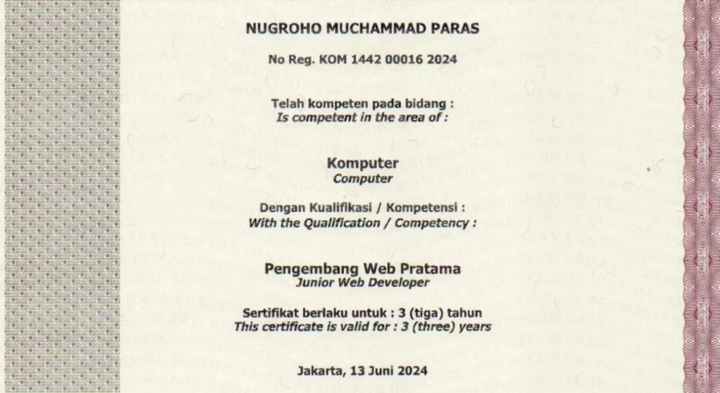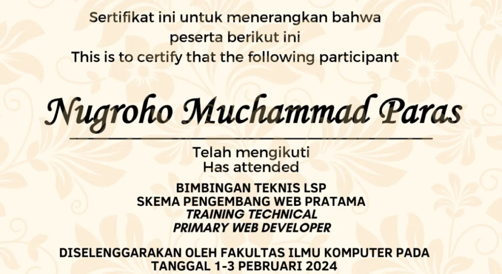 Kami percaya bahwa keahlian yang kuat harus didukung oleh pengakuan yang jelas. Setiap sertifikat mencerminkan secara dedikasi dalam belajar dan berkembang.
